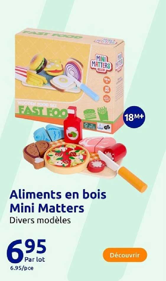Découvrez dès maintenant la offre Aliments en bois Mini Matters dans le catalogue de Action. Cette offre est valable du 24/09/2024 au 01/10/2024.