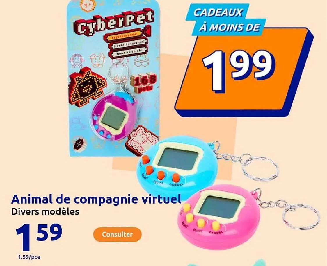 Découvrez le plaisir nostalgique des animaux de compagnie virtuels avec notre offre exceptionnelle sur ces compagnons numériques ! Disponibles en divers modèles, ces petits appareils rechargent des souvenirs d'enfance tout en offrant une expérience ludique aux enfants d'aujourd'hui. Leur prix imbattable de 1,59 € en fait un cadeau idéal pour tous les âges, juste à temps pour les fêtes !