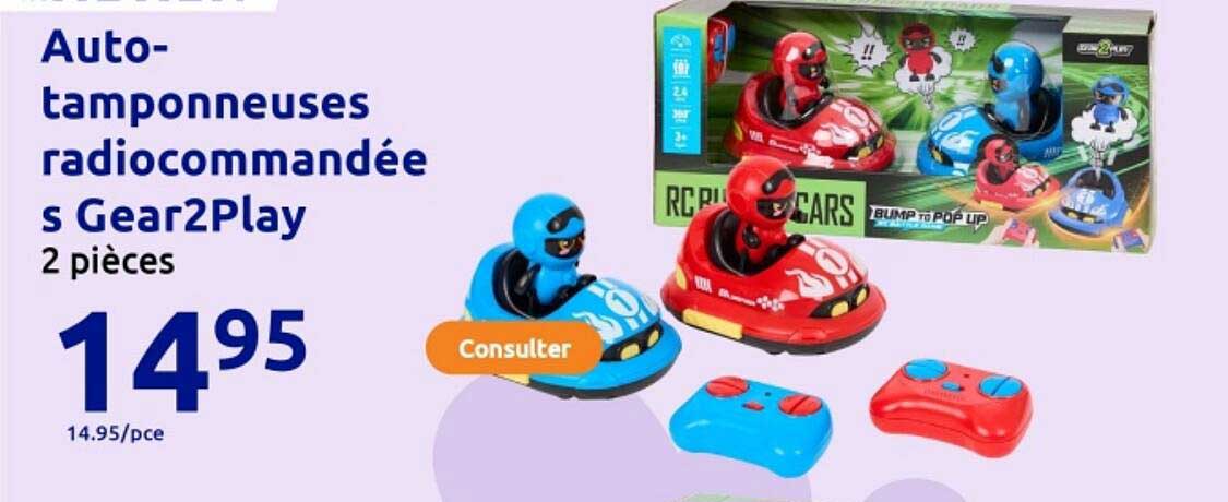 Les auto-tamponneuses radiocommandées Gear2Play sont le cadeau parfait pour les enfants qui cherchent à s'amuser tout en développant leurs compétences en coordination. Disponibles en rouge et bleu, ces petites voitures de course promettent des heures de divertissement, que ce soit à l'intérieur ou à l'extérieur. Ne manquez pas cette opportunité incroyable, valable du 2025-10-01 au 2025-10-07, pour faire plaisir aux petits pilotes !