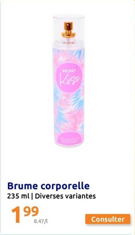 Découvrez dès maintenant la offre Brume corporelle dans le catalogue de Action. Cette offre est valable du 30/10/2024 au 05/11/2024.