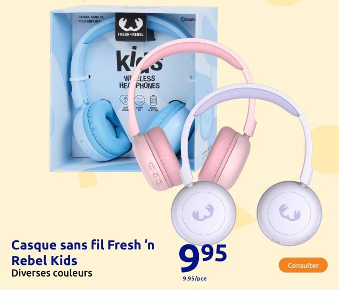 Découvrez dès maintenant la offre Casque sans fil Fresh ’n Rebel Kids dans le catalogue de Action. Cette offre est valable du 01/10/2025 au 07/10/2025.