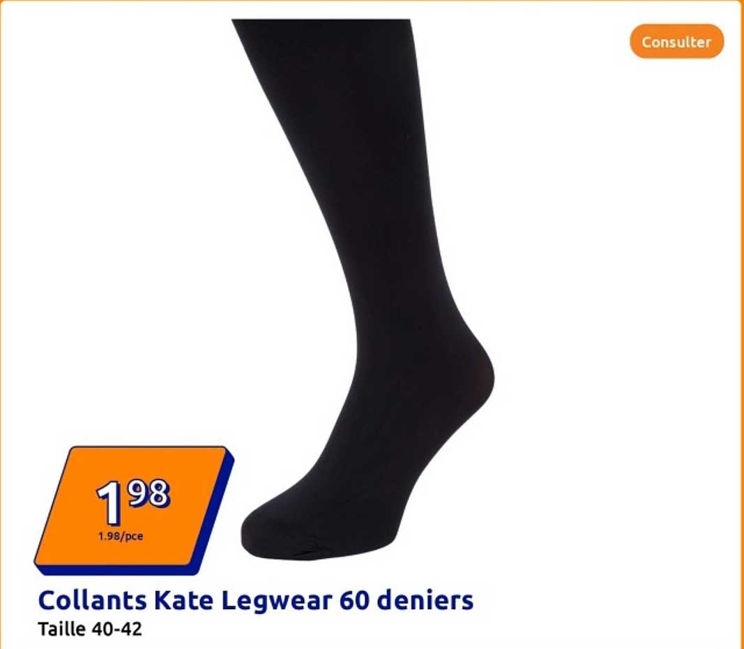 Découvrez dès maintenant la offre Collants Kate Legwear 60 deniers dans le catalogue de Action. Cette offre est valable du 20/11/2024 au 26/11/2024.