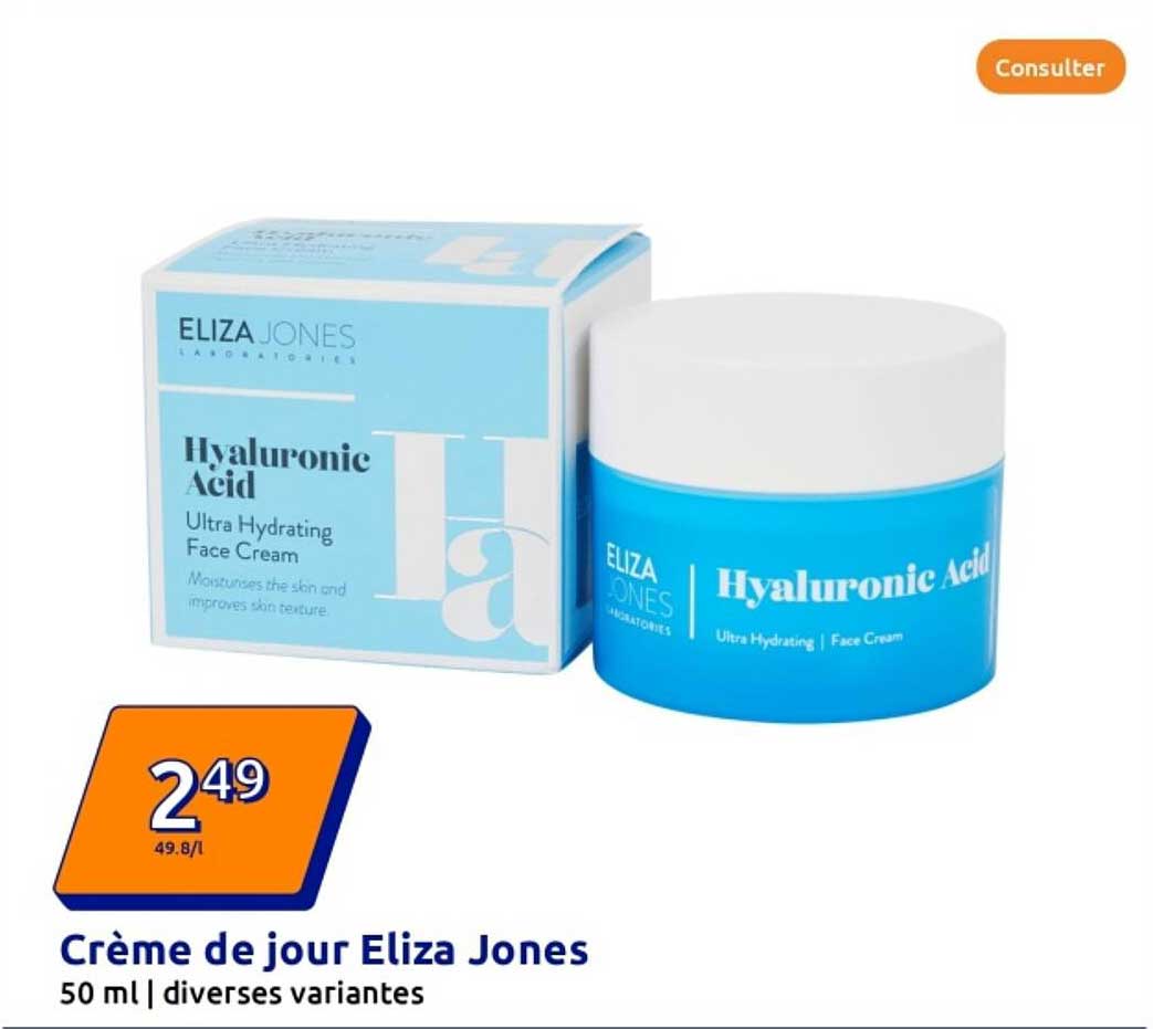 Découvrez dès maintenant la offre Crème de jour Eliza Jones dans le catalogue de Action. Cette offre est valable du 05/02/2025 au 11/02/2025.