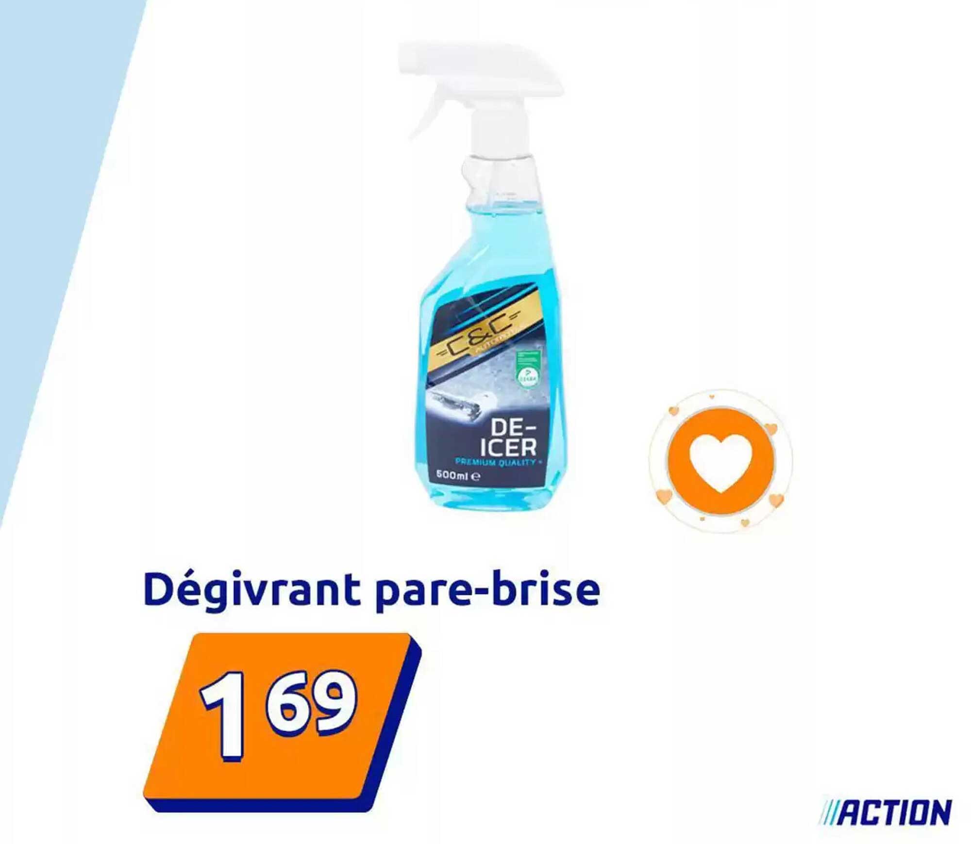 Découvrez dès maintenant la offre Dégivrant pare-brise dans le catalogue de Action. Cette offre est valable du 22/11/2024 au 27/11/2024.