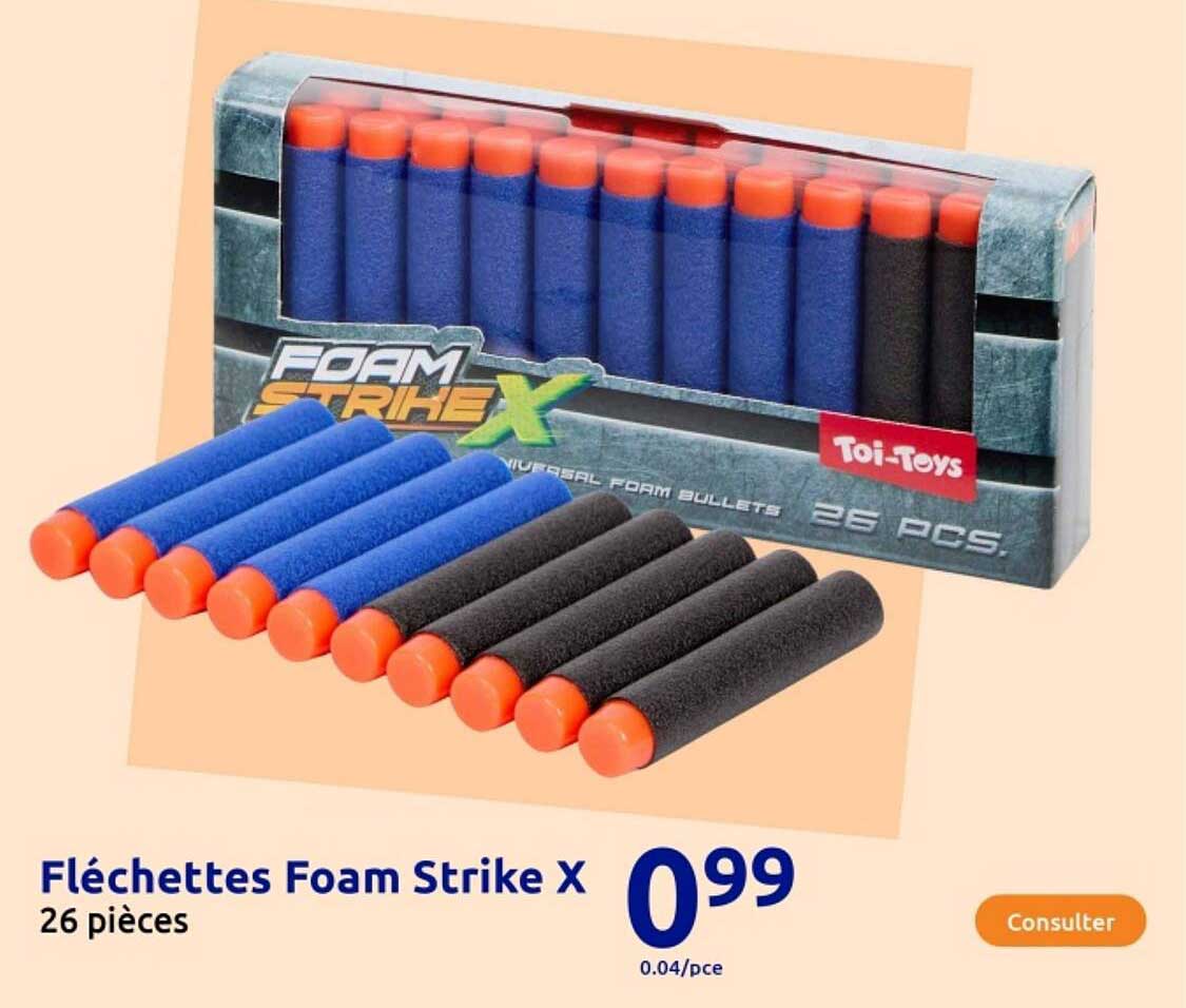 Découvrez dès maintenant la offre Fléchettes Foam Strike X dans le catalogue de Action. Cette offre est valable du 15/10/2025 au 21/10/2025.