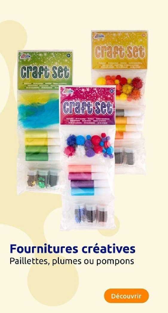 Offre de Fournitures Créatives Paillettes, Plumes Ou Pompons chez Action