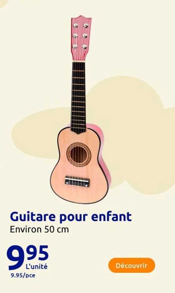 Découvrez l'offre de Guitare Pour Enfant chez Action! Cette offre fantastique est maintenant disponible dans le nouveau catalogue de Action. Profitez de cette occasion et économisez considérablement sur votre achat.