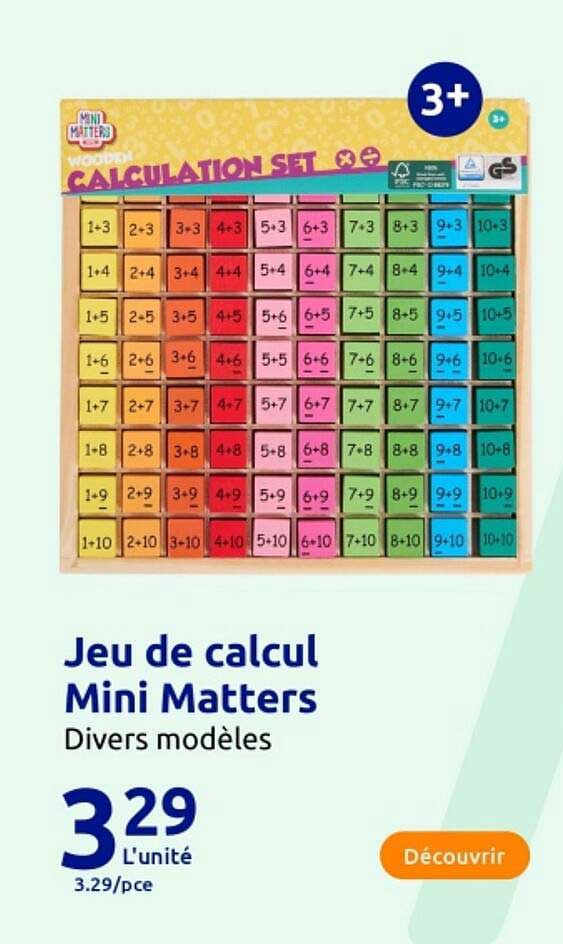 Découvrez l'offre de Jeu De Calcul Mini Matters chez Action! Cette offre fantastique est maintenant disponible dans le nouveau catalogue de Action. Profitez de cette occasion et économisez considérablement sur votre achat.