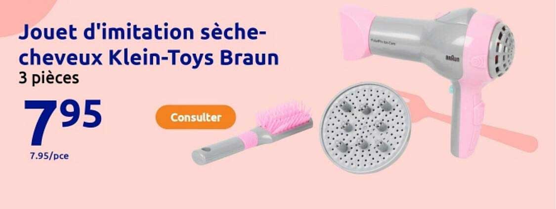 Découvrez dès maintenant la offre Jouet d'imitation sèche-cheveux Klein-Toys Braun dans le catalogue de Action. Cette offre est valable du 15/10/2025 au 21/10/2025.