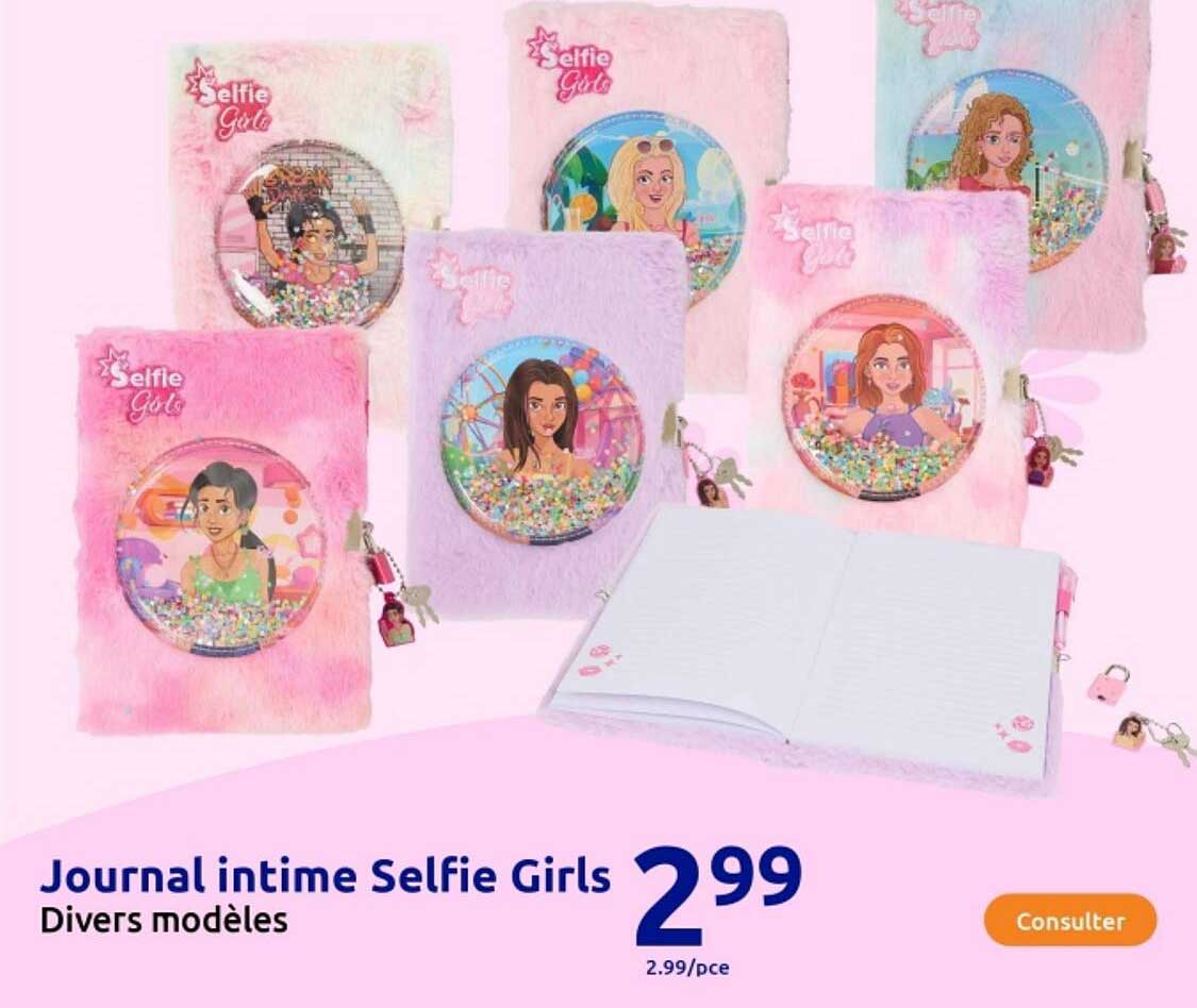 Découvrez dès maintenant la offre Journal intime Selfie Girls divers modèles dans le catalogue de Action. Cette offre est valable du 05/11/2025 au 11/11/2025.
