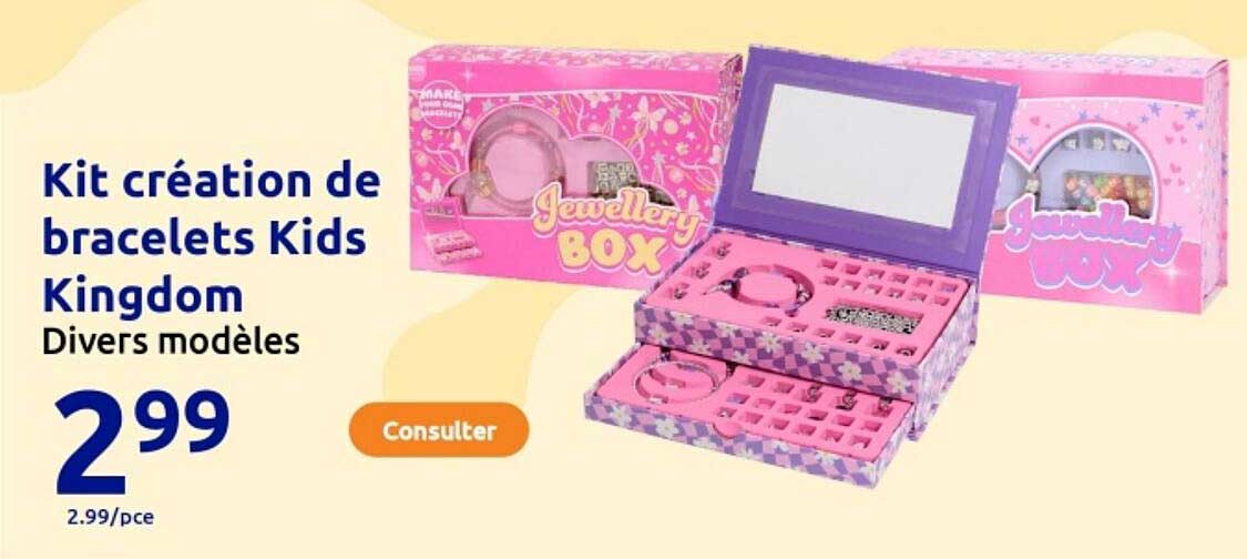Découvrez dès maintenant la offre Kit création de bracelets Kids Kingdom dans le catalogue de Action. Cette offre est valable du 01/10/2025 au 07/10/2025.