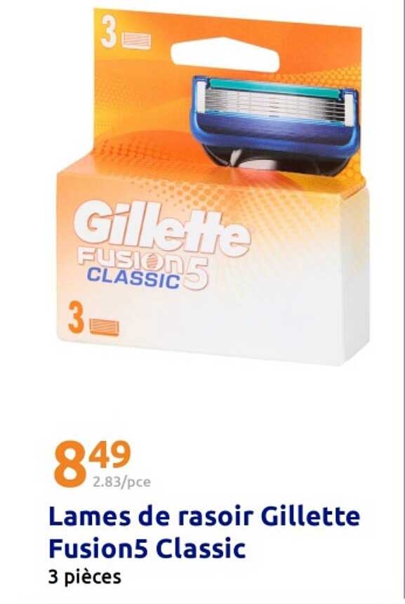 Découvrez la promotion sur les lames de rasoir Gillette Fusion5 Classic, un incontournable pour un rasage impeccable. Ces lames, spécialement conçues pour épouser les contours de votre visage, vous garantissent une expérience de rasage douce et efficace. Ne manquez pas cette occasion de vous équiper à prix réduit !