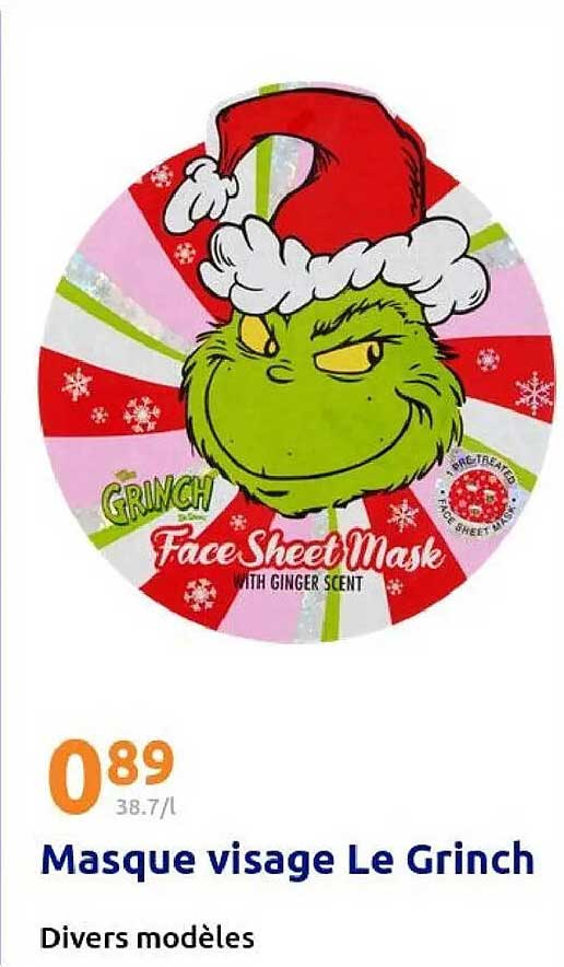 Découvrez dès maintenant la offre Masque visage Le Grinch dans le catalogue de Action. Cette offre est valable du 22/10/2025 au 28/10/2025.