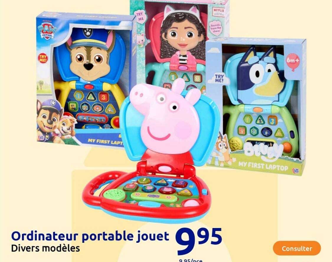 Si vous cherchez un cadeau amusant et éducatif pour vos enfants, vous allez adorer cette offre ! L'ordinateur portable jouet est proposé à un prix imbattable et saura captiver l'attention des plus petits tout en les aidant à développer leurs compétences. Disponible en plusieurs modèles inspirés de personnages populaires, cet article est idéal pour le jeu interactif.
