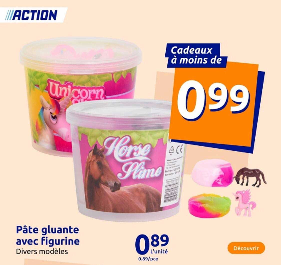 Découvrez dès maintenant la offre Pâte gluante avec figurine dans le catalogue de Action. Cette offre est valable du 04/12/2024 au 10/12/2024.
