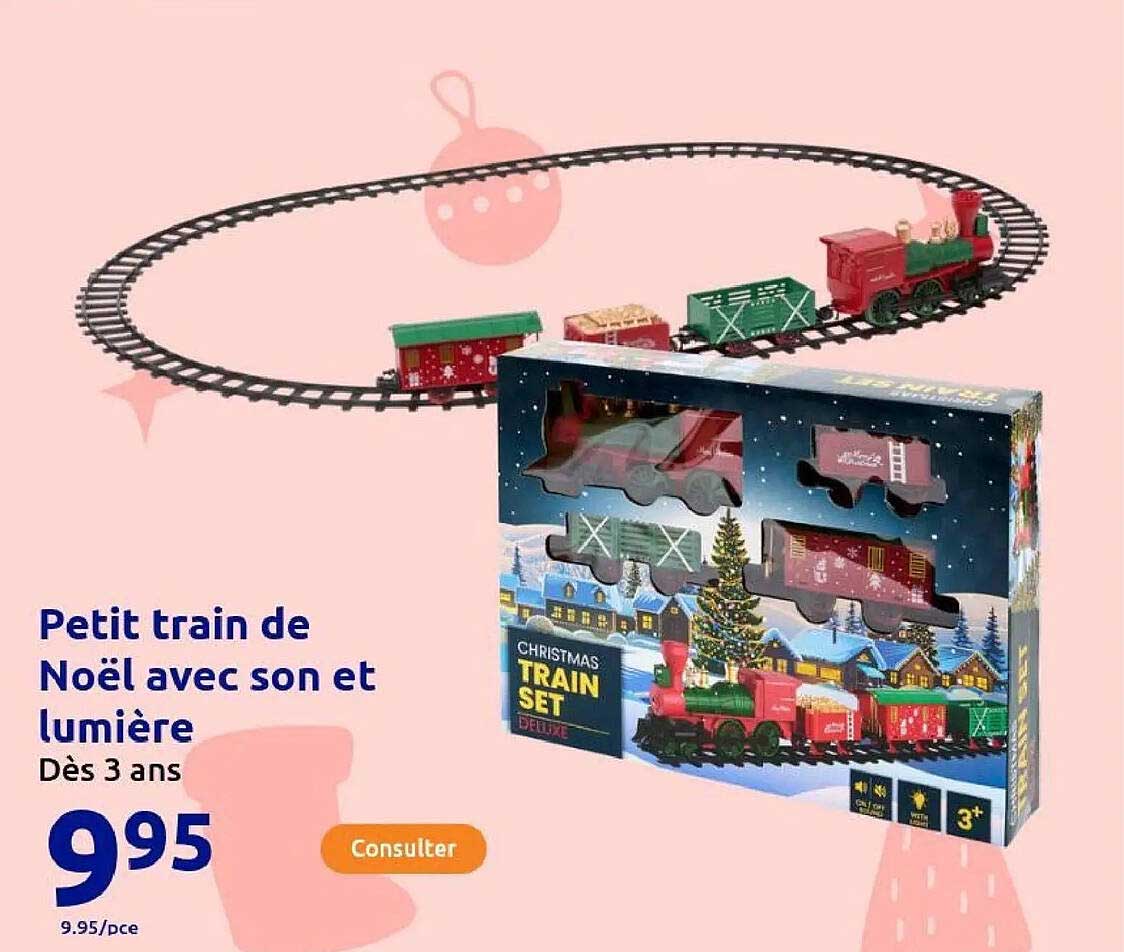 Découvrez dès maintenant la offre Petit train de Noël avec son et lumière dans le catalogue de Action. Cette offre est valable du 29/10/2025 au 04/11/2025.