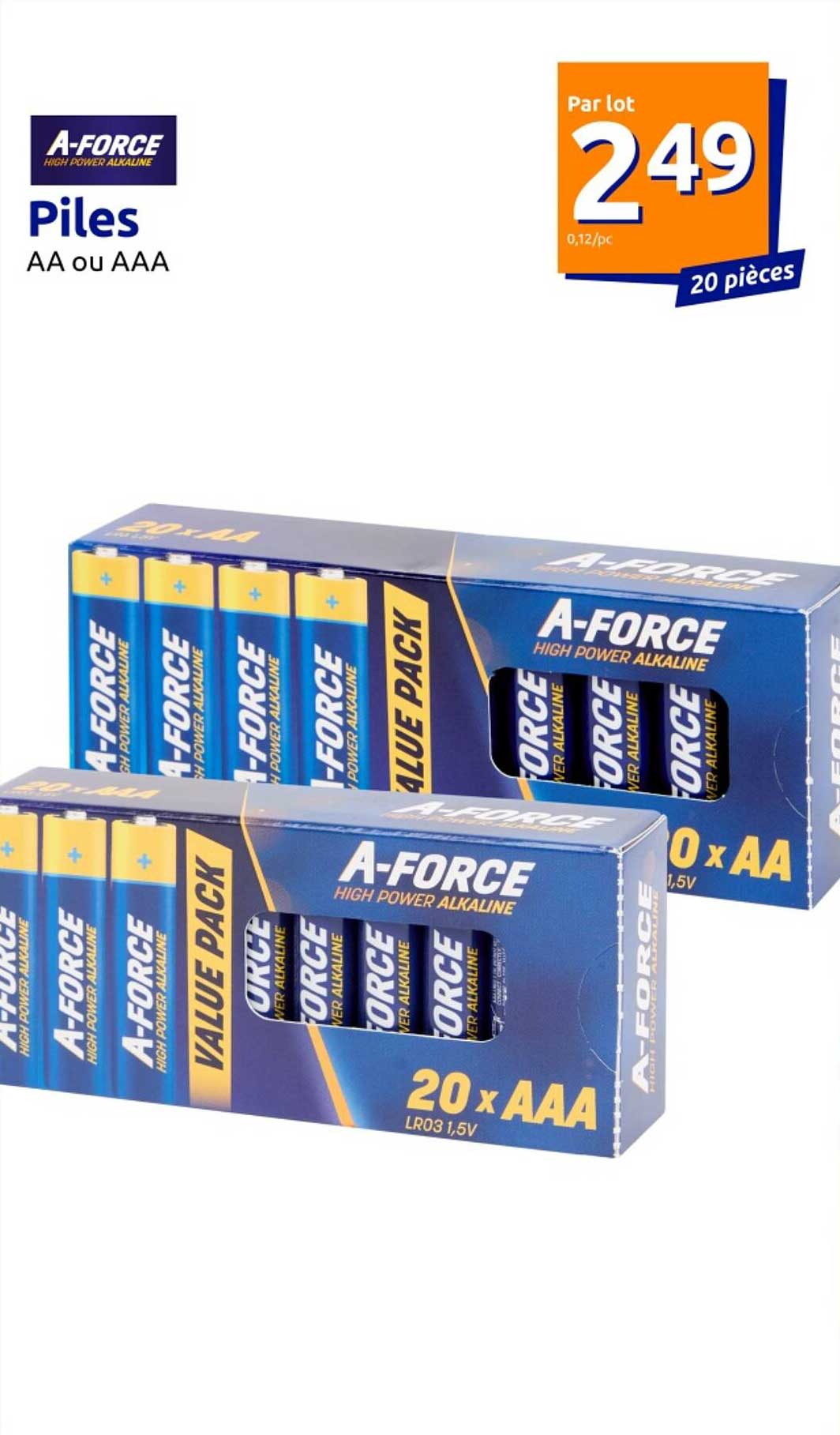 Découvrez dès maintenant la offre Piles AA ou AAA dans le catalogue de Action. Cette offre est valable du 16/10/2024 au 22/10/2024.