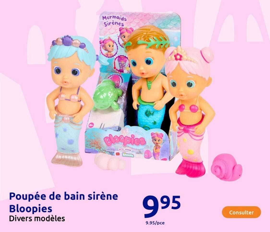 Plongez dans l'univers féérique des sirènes avec la poupée de bain Bloomies, un jouet fantastique pour les petits aventuriers aquatiques. Disponible à un prix irrésistible, cette poupée transforme chaque bain en un voyage magique sous la mer.