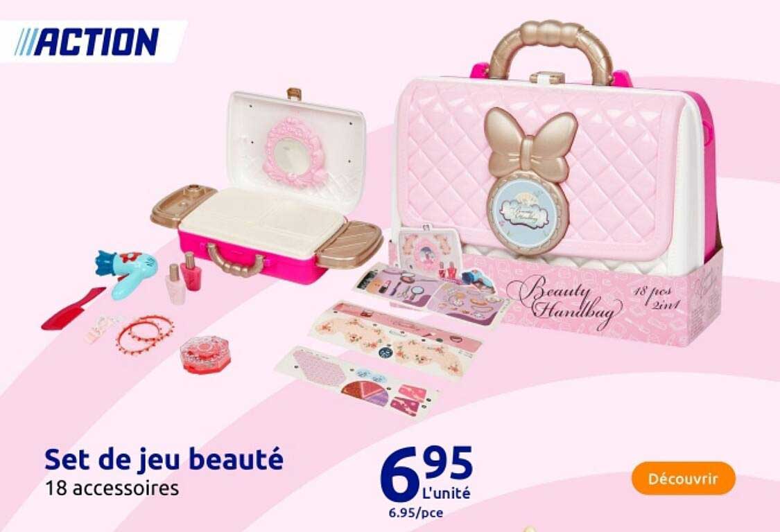 Découvrez dès maintenant la offre Set de jeu beauté dans le catalogue de Action. Cette offre est valable du 30/10/2024 au 05/11/2024.