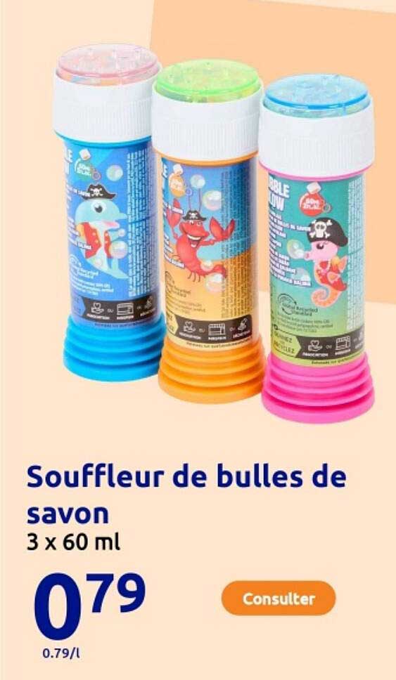 Découvrez dès maintenant la offre Souffleur de bulles de savon dans le catalogue de Action. Cette offre est valable du 01/10/2025 au 07/10/2025.