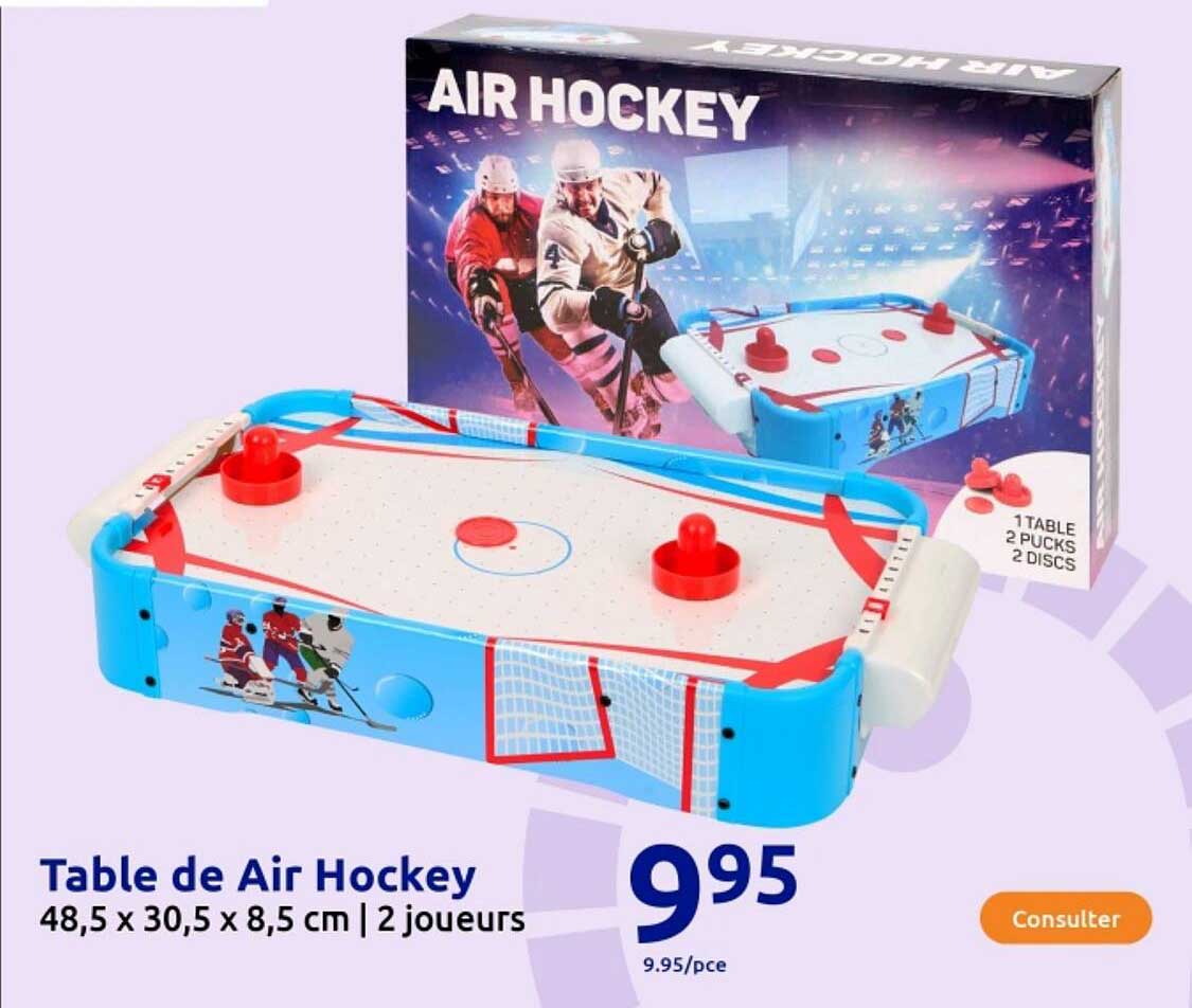 Avis aux amateurs de jeux d'arcade ! La Table de Air Hockey est la solution idéale pour vos soirées entre amis ou en famille. Avec ses dimensions de 48,5 x 30,5 x 8,5 cm, ce jeu d'intérieur s'intègre facilement dans votre salon ou votre bureau. Disponible à un prix attractif, c'est l'occasion rêvée de dynamiser vos moments de loisirs.