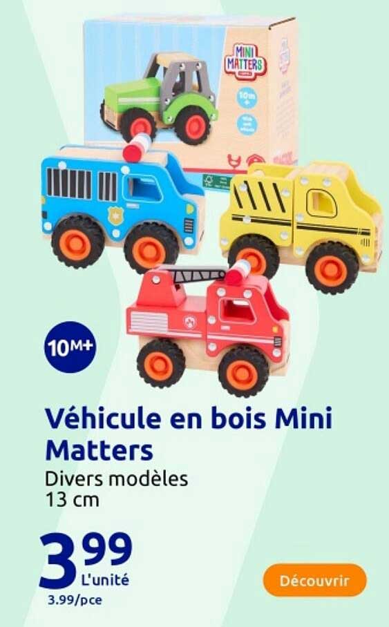 Découvrez dès maintenant la offre Véhicule en bois Mini Matters dans le catalogue de Action. Cette offre est valable du 30/10/2024 au 05/11/2024.