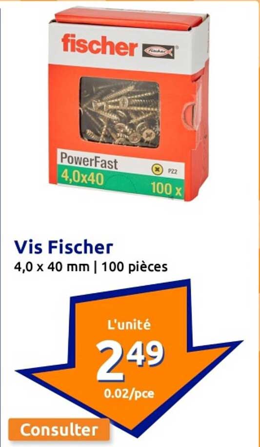 Découvrez la superbe offre de Vis Fischer dans le nouveau catalogue de Action. En plus de cette offre, vous trouverez de nombreuses autres réductions attrayantes. Vous pouvez facilement commander le Vis Fischer en ligne via le site web de Action ou l'acheter dans un magasin près de chez vous.
