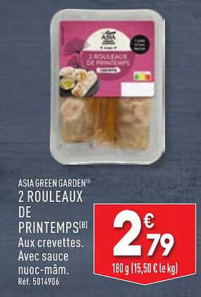 Découvrez l'offre de 2 Rouleaux De Printemps® Aux Crevettes chez ALDI! Cette offre fantastique est maintenant disponible dans le nouveau catalogue de ALDI. Profitez de cette occasion et économisez considérablement sur votre achat.