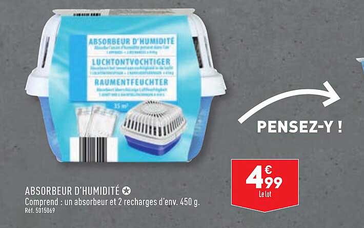 Découvrez l'offre de Absorbeur D'humidité chez ALDI! Cette offre fantastique est maintenant disponible dans le nouveau catalogue de ALDI. Profitez de cette occasion et économisez considérablement sur votre achat.