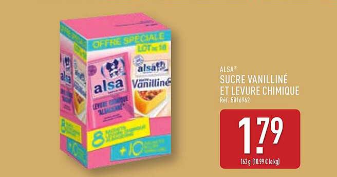 Découvrez l'offre de Alsa® Sucre Vanilliné Et Levure Chimique chez ALDI! Cette offre fantastique est maintenant disponible dans le nouveau catalogue de ALDI. Profitez de cette occasion et économisez considérablement sur votre achat.