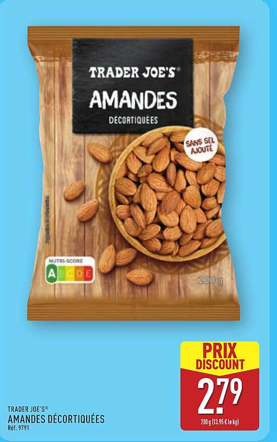 Les amandes décortiquées de Trader Joe's sont une délicieuse collation qui mérite une place dans votre cuisine. À un prix particulièrement attractif, cette offre vous permet de profiter des bienfaits nutritionnels des amandes sans vous ruiner. Disponible du 9 au 15 septembre 2025, c'est le moment idéal pour en faire le plein !