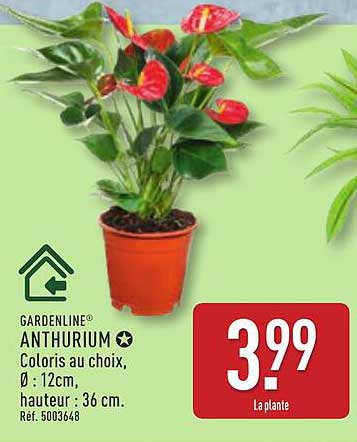 Découvrez l'anthurium, une plante d'intérieur qui apporte une touche de couleur à votre foyer. Avec ses magnifiques fleurs et son feuillage luxuriant, c'est l'élément décoratif idéal pour égayer n'importe quelle pièce. Profitez de cette offre exclusive valable jusqu'au 11 août 2025.