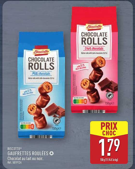 Découvrez dès maintenant la offre BISCOTTO® GAUFRETTES ROULÉES ☆ Chocolat au lait ou noir. dans le catalogue de ALDI. Cette offre est valable du 11/11/2025 au 17/11/2025.