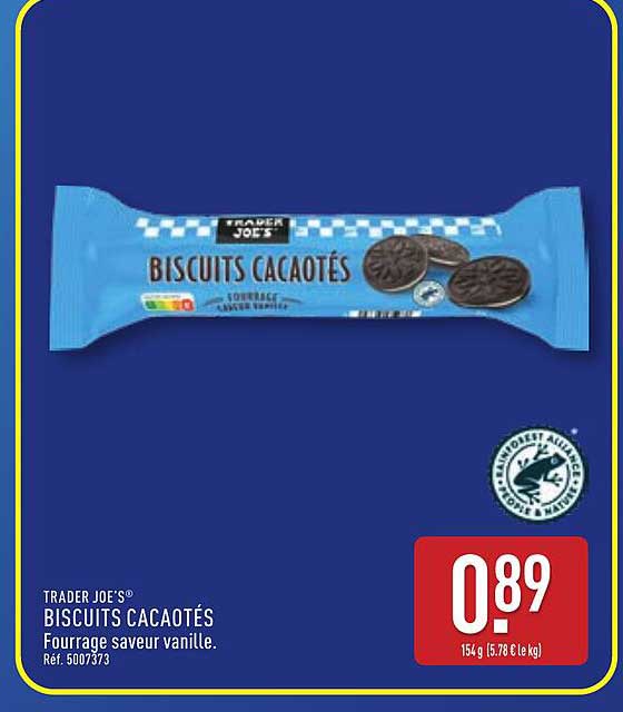 Découvrez dès maintenant la offre BISCUITS CACAO TÉS dans le catalogue de ALDI. Cette offre est valable du 07/01/2025 au 13/01/2025.