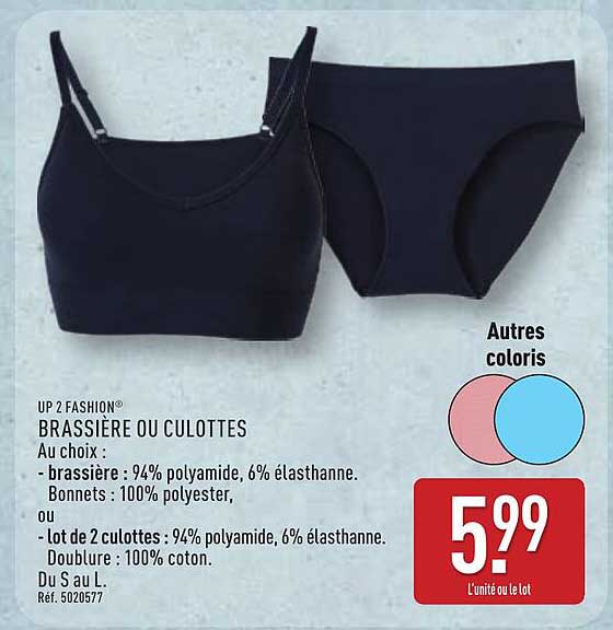 Découvrez dès maintenant la offre BRASSIÈRE OU CULOTTES dans le catalogue de ALDI. Cette offre est valable du 19/08/2025 au 25/08/2025.