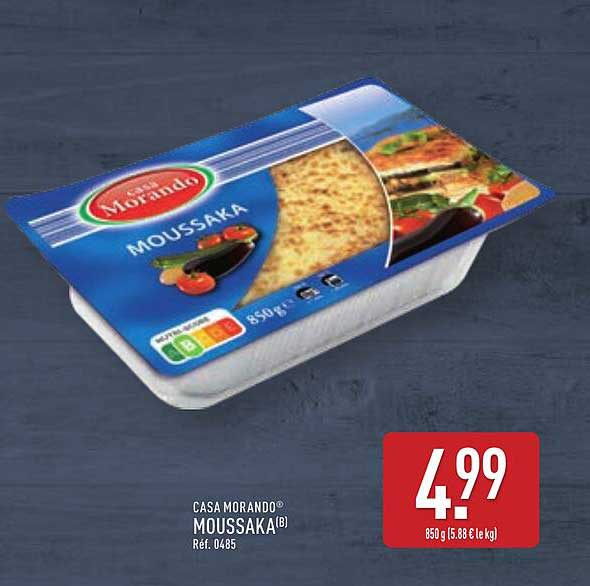 Découvrez l'offre de Casa Morando® Moussaka(B) chez ALDI! Cette offre fantastique est maintenant disponible dans le nouveau catalogue de ALDI. Profitez de cette occasion et économisez considérablement sur votre achat.