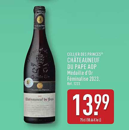 Découvrez l'offre de Celler Des Princes® Châteauneuf Du Pape Aop Médaille D'or Féminalise 2023. chez ALDI! Cette offre fantastique est maintenant disponible dans le nouveau catalogue de ALDI. Profitez de cette occasion et économisez considérablement sur votre achat.