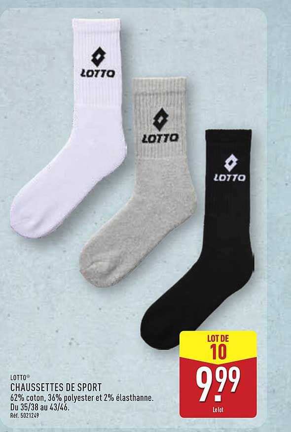 Découvrez notre incroyable offre sur les chaussettes de sport Lotto, disponibles en lot de 10 au prix exceptionnel de 9,99 €. Parfaites pour le sport ou le quotidien, ces chaussettes allient confort et style, tout en étant à un prix très compétitif. Profitez de cette promotion valable du 11 au 17 novembre 2025 pour renouveler vos bas de garde-robe !