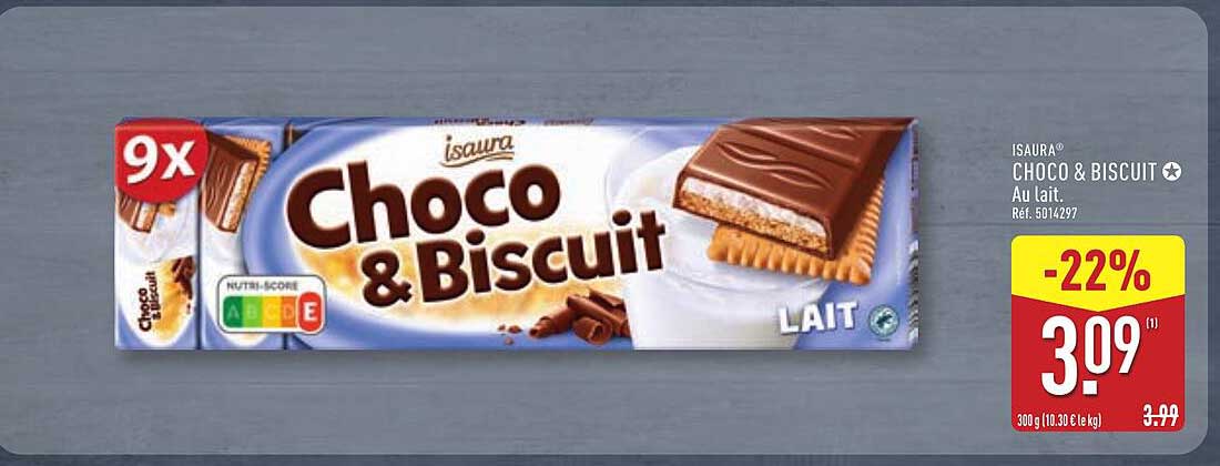 Découvrez les délicieux Choco & Biscuit au lait de la marque Isaaura, une alléchante combinaison de chocolat savoureux et de biscuits croustillants. Cette offre spéciale, disponible uniquement chez ALDI, vous permettra de satisfaire vos envies de gourmandise à un prix exceptionnel, du 7 au 13 octobre 2025.