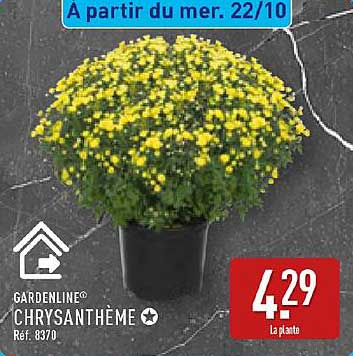 Le jardin est un espace de sérénité et de beauté, et cette promotion exceptionnelle sur le chrysanthème de GARDENLINE® vous permettra d'embellir votre extérieur à prix réduit. Disponibles à partir du 22 octobre, ces magnifiques plantes aux fleurs jaunes sauront apporter une touche de couleur et de fraîcheur à votre maison ou jardin. Ne manquez pas cette occasion de rendre vos espaces davantage accueillants et harmonieux !