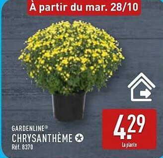 Découvrez dès maintenant la offre CHRYVANTHÈME dans le catalogue de ALDI. Cette offre est valable du 28/10/2025 au 03/11/2025.