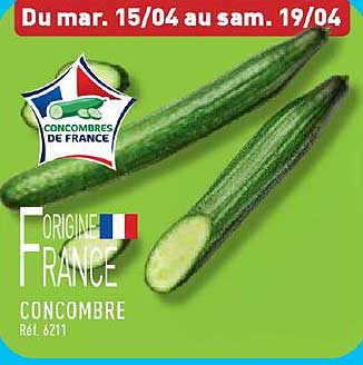 Découvrez dès maintenant la offre CONCOMBRE dans le catalogue de ALDI. Cette offre est valable du 15/04/2025 au 21/04/2025.