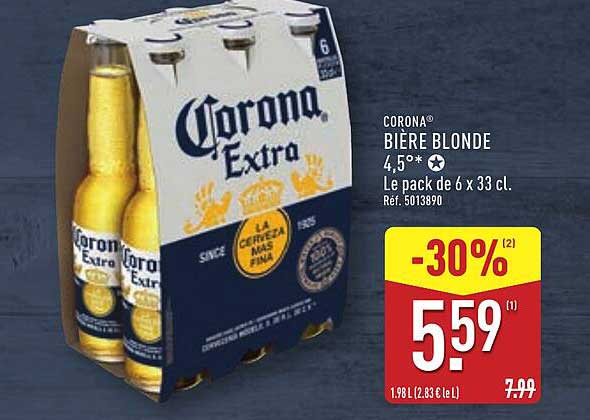 Découvrez l'offre de Corona® Bière Blonde chez ALDI! Cette offre fantastique est maintenant disponible dans le nouveau catalogue de ALDI. Profitez de cette occasion et économisez considérablement sur votre achat.