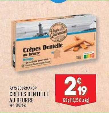 Découvrez l'offre de Crêpes Dentelle Au Beurre chez ALDI! Cette offre fantastique est maintenant disponible dans le nouveau catalogue de ALDI. Profitez de cette occasion et économisez considérablement sur votre achat.