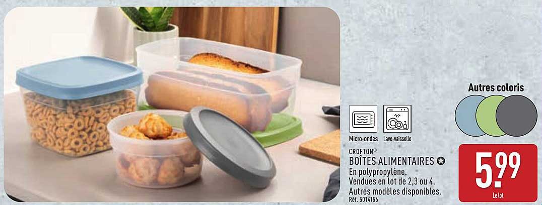 Découvrez l'offre de Crofton® Boîtes Alimentaires chez ALDI! Cette offre fantastique est maintenant disponible dans le nouveau catalogue de ALDI. Profitez de cette occasion et économisez considérablement sur votre achat.
