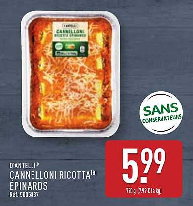 Offre de D'antelli® Cannelloni Ricotta(B) Épinards chez ALDI