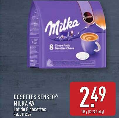 Découvrez l'offre de Dosettes Senseo® Milka chez ALDI! Cette offre fantastique est maintenant disponible dans le nouveau catalogue de ALDI. Profitez de cette occasion et économisez considérablement sur votre achat.