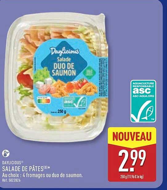 Découvrez notre délicieuse Salade Duo de Saumon, disponible chez ALDI ! Cette offre spéciale, valable du 28 octobre au 3 novembre 2025, vous permet de savourer un plat à la fois léger et savoureux, parfait pour un repas rapide ou une entrée raffinée. Avec ses ingrédients frais et sa préparation pratique, il serait difficile de trouver une meilleur option pour vos repas quotidiens.