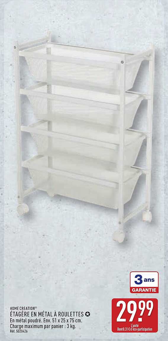 Découvrez dès maintenant la offre ÉTAGÈRE EN MÉTAL À ROULETTES dans le catalogue de ALDI. Cette offre est valable du 16/07/2025 au 21/07/2025.