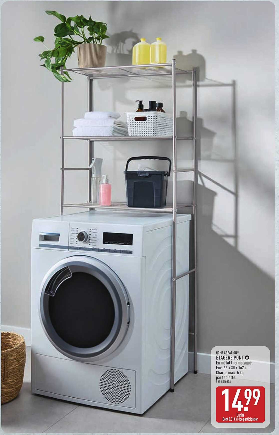 Découvrez l'étagère pont en métal thermolaqué d'ALDI, une solution chic et pratique pour optimiser votre espace. Parfaitement conçue pour s'intégrer dans votre buanderie, salle de bain ou cuisine, cette étagère est l'accessoire idéal pour ranger vos produits de manière élégante et ordonnée.